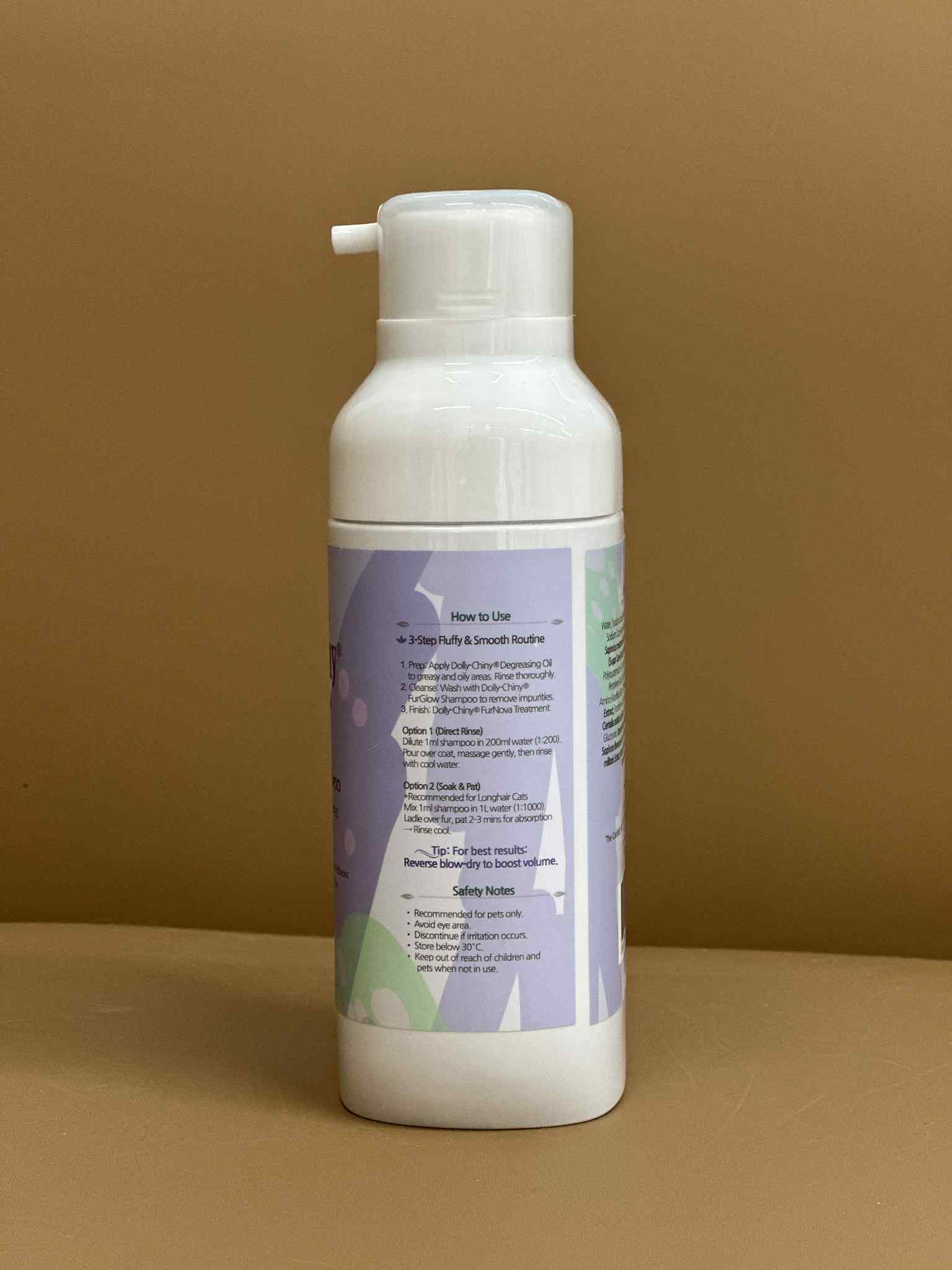 Ideal for long-haired cats that require frequent bathing - especially those in preparation for shows! For best results, use with Dolly-Chiny Degreasing Oil and Dolly-Chiny Furglow Gentle Cleansing Shampoo to deeply moisturize, enhance coat volume, and prevent tangles.